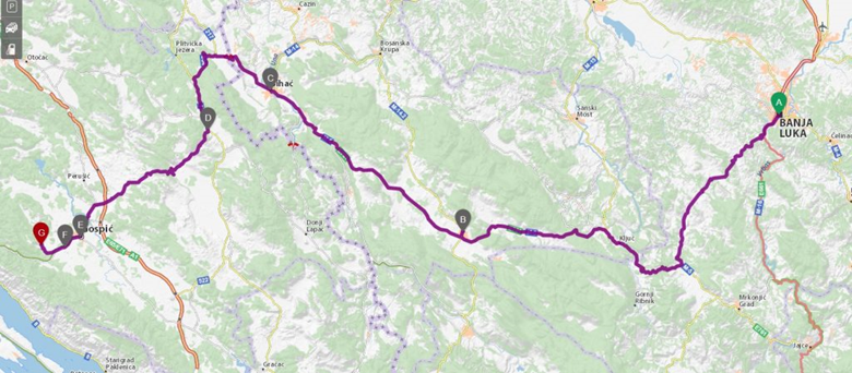 Како у властитом аранжману доћи из правца Београда или Бањалуке? Којим путем од Госпића до споменика код Шаранове јаме, мјеста окупљања?