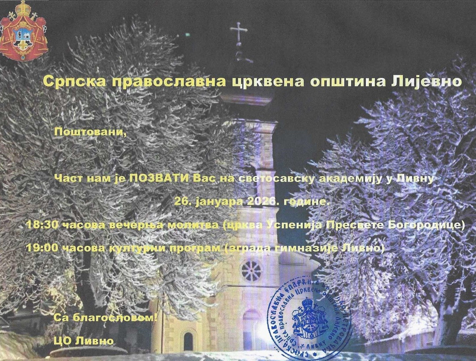 19.00 Светосавска академија – зграда Гимназије Ливно.